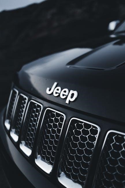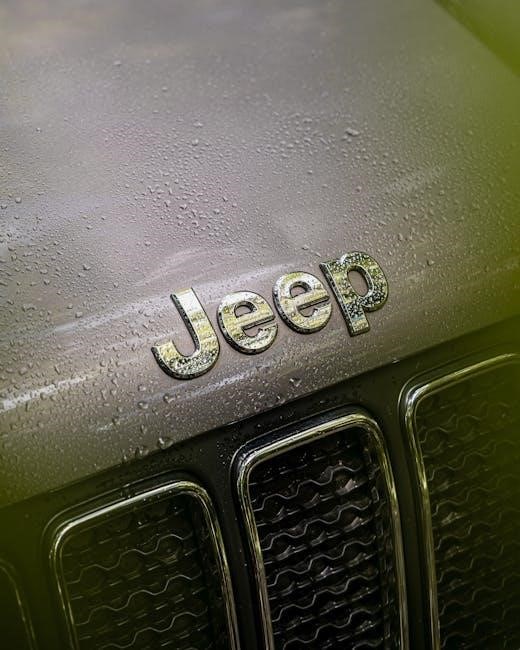The manual also covers tire replacement guidelines, emphasizing the importance of using tires that meet Jeep’s specifications. Proper wheel alignment is crucial to prevent premature tire wear and ensure vehicle stability.